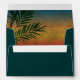 Elégante enveloppes mariage de couleur Rich pour correspondre à l'ensemble d'invitation, idéal pour les mariages de plage, les mariages de destination et les mariages de stations tropicales de l'île. Coucher de soleil bleu, jaune et rouge, avec branches de palmiers vert foncé. Facile à customiser avec vos informations de mariage en ligne.