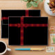 Noir à l'intérieur et à l'extérieur entièrement enveloppé d'un ruban et d'un arc en satin rouge.