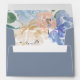 Ces enveloppes de faire-part de mariage bleues poussiéreuses sont parfaites pour un mariage de printemps ou d'été. Le design somptueux présente des pivoines bleu clair disposées avec des fleurs de pêche et de crème dans un magnifique bouquet. Personnalisez le rabat d'enveloppe avec votre adresse de retour.