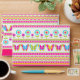 Superbe design coloré avec dessin de style rétro de jardin de fleurs, papillons, points, rayures et zig-zags sur un arrière - plan léger. Motif moderne et rétro en rose, bleu, jaune, violet, vert. Cadeau doux, élégant et élégant pour chaque femme. Facile à personnaliser avec votre propre nom ou texte.