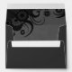 © Sunny Mars Designs - Hibiscus floral : Noir sur Enveloppes Mariages gris foncé - Moderne, élégant, classe, tendance, chic enveloppes mariages gothiques personnalisables avec un design d'hibiscus tropical tourbillonnant noir gothique magnifique, élégant, élégant, gothique.