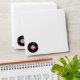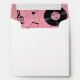 Enveloppe Whimsical faite en blanc, avec une doublure rose qui a des graphiques de notes musicales noires et des disques vinyles. Un pois noir et rose rayé et une adresse de retour noire, sur le rabat arrière. L'avant de l'enveloppe a des graphiques d'un petit disque vinyle noir et rose, dans le coin inférieur gauche. Personnalisez l'adresse de retour pour votre soirée à thème amusante des années 50.