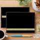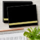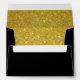Une enveloppe de couleur noire avec badge de bande dorée sur le dessus et la surface de parties scintillant en métal doré à l'intérieur du couvercle donne une enveloppe parfaite en noir et or.