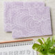 Dentelle assez blanche sur un arrière - plan pourpre. Ce motif de dentelle est parfait pour un mariage orienté pourpre.