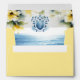 Ces enveloppes élégantes portent le mot "Mariage" en blanc sur un arrière - plan jaune. L'enveloppe s'ouvre pour révéler une crête bleu aquarelle ornée avec une scène océanique et des fleurs jaunes d'hibiscus. Utilisez les champs modèle pour ajouter votre adresse de retour personnalisée et votre initiale monogrammée. Pour voir la suite correspondante visitez www.zazzle.com/dotellabelle Art unique exclusif à Do Tell A Belle.