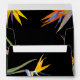 Oiseaux des enveloppes florales de mariage de paradis. Conception moderne et noire de mariage avec des accents d'or et oiseaux des fleurs de paradis. Cette conception coordonne avec nos oiseaux de collection de mariage de paradis.