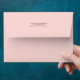 Une enveloppe couleur rose pâle (706). Ajoutez votre adresse de retour sur le rabat arrière. Si vous voulez une couleur différente, envoyez un courriel à paula@labellarue.com