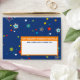 Enveloppes de galaxie étoile extra-atmosphérique avec adresse de retour sur rabat. Inclut la personnalisation du nom et de l'adresse. Dans la marine, bleu, orange, jaune, vert et rouge. Roquette rouge et bleu.