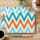 Moderne, tendance et élégant motif en chevron de zigzag dans les tons bleu aqua, orange mandarin et blanc.