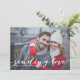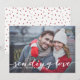 Carte photo de la Saint Valentin fantasque avec écriture manuscrite blanche et motif à points rouges. Des articles similaires sont disponibles dans mon magasin.