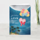 La carte idéale pour envoyer l'amour le jour de la Saint Valentin ou tout autre jour de l'année ! Dépeint un coeur avec un grand arc rouge, emporté par des ballons colorés à travers une mer tranquille sous une lune vive et des palmiers en contrebas. À l'intérieur. Idéal pour envoyer un message numérique à votre famille et à vos amis !