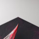 A dinosaur's fossil head emerges on a charcoal granite backdrop. Engage with abstract black and red burgundy colours, intertwined with textured charcoal elements, in a dark-themed masterpiece that spans through the ages.