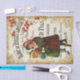 Vintage ephemera two lovely cute kids holding pine cones on French theatre poster Decoupage tissue paper. Ideal for your holiday decoupage projects.