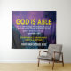 Ephesians 3:20 GOD IS ABLE Church Tapestry. Inspirational Christian Scripture backdrop with the Bible verse from Ephesians 3:20 - GOD IS ABLE TO DO EXCEEDINGLY ABUNDANTLY - and also EXCEEDINGLY ABUNDANTLY ABOVE AND BEYOND. The OPTIONAL placeholder name at the bottom is CUSTOMIZABLE, so you can PERSONALIZE by replacing with your name or choice of text, or simply delete. The design shows a rocky clifftop scene in purples, blues and teals, with bold white and yellow typography. This Christian tapestry would make a great backdrop to your home, church or faith-based organization. Other popular Scripture verses are available. Please contact me if you would like your church or company logo added. Choose from a wide selection of Christian designs on cards, home decor, clothing and gifts designed by Berean Designs.