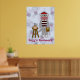 A funny retro cool beatnik sock monkey stuffed animal cartoon character fun kitschy mid-century fifties retro vintage esthetic fun creature illustration cheeky happy coffeehouse artsy poet design illustrated deluxe unique home décor wall art poster. Get a fun poster print today.