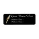 Photo d'un coquillage en spirale blanche aux lignes dorées, sur un arrière - plan noir. Copyright ©Kimberly J Tilley. Customisez ce étiquette de adresse de coquillages avec vos informations d'envoi.