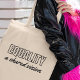 These bags were super cute (I purchased 3). The material is more of a canvas look & feel. The colour of the bag is slightly off white, but the letters look exactly as pictured. I took 3 photos in different lighting. Would recommend! I liked how there was an option to choose the font and colour of the name. The words are legible and the colours are exactly as pictured.