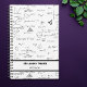 Planificateur mathématique noir et blanc pour enseignants et étudiants. L'arrière - plan a un motif d'équations et de formules manuscrites. Grand cadeau pour les diplômes ou Noël. Illustré et dessiné par Patricia Alvarez.