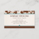 Professional rustic western-style business card for equestrian coaches featuring a cowhide leather look. Designed to present your contact details with an authentic, confident, and approachable appearance suited for barns, ranches, and equestrian facilities. Ideal for coaching sessions, clinics, competitions, client meetings, and referrals. Editable text. Clean print-ready layout.