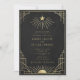 A luxurious black and gold wedding invitation featuring radiant celestial motifs and geometric Art Deco detailing. Personalized with names, date, and venue, this design brings timeless elegance and cosmic symbolism to your celebration. Please note: gold is a printed color, not metallic or foil.