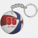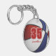 Ce porte - clé acrylique cool de basketball pour garçons ou filles présente l'image réaliste d'un basketball qui a recoloré alternant des panneaux rouges, blancs et bleus sur lesquels vous pouvez facilement customiser le nom et le numéro de maillot de l'athlète sur le devant et le dos - par katz_d_zynes