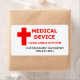 Stick on Advisory étiquette for bagage, bags, or boîtes contenant votre appareil médical, fournitures, ou équipement avertit les manutentionnaires de bagages à manipuler avec soin. Texte réservé pour votre nom et votre numéro de contact. Vérifiez la catégorie bagages de Bizeeboy pour obtenir une étiquette de bagage avec ce design.
