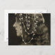 Vintage black and white photo of a young long haired woman with an "Egyptian" headpiece costume