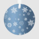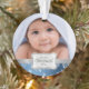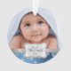 Ajoutez vos propres ornements de Noël personnalisés par photo de bébé. Mon ęr Noël. Flocons de neige de bleu royal et de blanc de bébé avec le ruban argenté. Joyeux Noël !