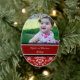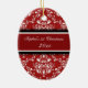 Ęr ornement de Noël du bébé personnalisable avec vos propres photos de bébé dans le motif floral classique rouge et blanc élégant de damassé. Un cadeau mémorable pour toute nouvelle maman cette saison des vacances.