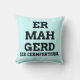 Dorky and fun typography text design pillow featuring a word from the popular meme of Ermahgerd. Ermahgerd is a very obnoxious and lisped way to say "Oh my God!" Customize with your own text and background colour. Use an ermahgerd translator such as this one [http://ermahgerd.jmillerdesign.com/#!/translate] to make your personalized text even more silly!