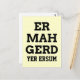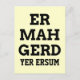 Dorky and fun typography text design postcard featuring a word from the popular meme of Ermahgerd. Ermahgerd is a very obnoxious and lisped way to say "Oh my God!" Customize with your own text and background colour. Use an ermahgerd translator such as this one [http://ermahgerd.jmillerdesign.com/#!/translate] to make you personalized text even more silly!