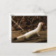 This postcard features the stoat (Mustela erminea), also known as the ermine or short-tailed weasel, a species of Mustelid native to Eurasia and North America. His winter coat is pure white with a black tip at the tail. In summer, the fur molts to brown. He is a fierce hunter, feeding mainly on small rodents but quite capable of catching prey much larger. Here he is briefly pausing on a fallen log before continuing his hunting activities.