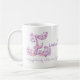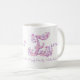 Letter E name and name meaning mug. Pretty heart and flower capital E doodled typographic design featuring hearts and flowers and the words Esmae A joyful beauty. Beloved and respected. © Unique art and design by Sarah Trett. www.sarahtrett.com for www.mylittleeden.com on zazzle