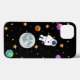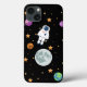 Coque iphone de l'espace noir avec astronaute, planètes et étoiles en arrière - plan.