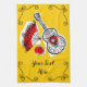 Design Whimsical, dans un style rétro, avec des souvenirs de vacances espagnoles ; guitare en fer forgé, ventilateur en dentelle et rose rouge. Un design personnalisable en noir, blanc, rouge et jaune doré pour que vous personnalisiez avec vos propres textes, images et idées. Une image art numérique originale.