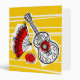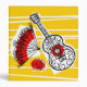 Un design fantaisiste de style rétro avec des souvenirs de vacances espagnoles, une guitare en fer forgé, un ventilateur en dentelle et une rose rouge. Un design personnalisable en noir, blanc, rouge et jaune doré pour que vous personnalisiez avec vos propres textes, images et idées. Une image art numérique originale.