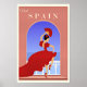 Espana travel poster, Visit Spain, flamenco dancer in red holding fan.