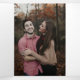 Hermosas flores de amapola rosa pálido en acuarela, una al lado de la otra, bilingüe en español / inglés con una foto de pareja en el centro.