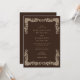 This design features a deep chocolate brown background framed by an ornate cream baroque border. The vintage-inspired, baroque floral flourishes and scrollwork create a formal, high-contrast look perfect for fall or winter weddings. Ideal for couples seeking an elegant, traditional aesthetic with a sophisticated, earthy color palette.