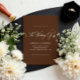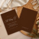 Set the tone for your celebration with this espresso brown fall wedding invitation, designed in a warm, refined palette that blends neutral elegance with seasonal charm. Perfect for autumn weddings, engagement dinners, or rehearsal celebrations, it reflects understated sophistication with every detail. Ideal for couples who love earthy tones, minimal layouts, and timeless design inspired by the beauty of fall.