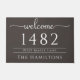 Charming and classic custom doormat features "welcome" in elegant script paired with your family’s last name, address and house number. Designed with clean stripe accents, this doormat offers a timeless look that can be personalized to match your entryway.