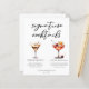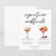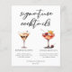 Cette feuille de menu de cocktails sophistiquée vous propose une simple typographie noire au-dessus de 2 de vos boissons préférées et de leurs ingrédients pour votre bar mariage côtier. Un élégant dessin Espresso Martini et Cherry French 75 ajoute une touche amusante à votre menu du bar. Complétez avec les noms du couple et la date de leur réception.