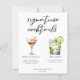 Cette carte de cocktails chic et signature propose une tyopgraphie noire simple au-dessus de 2 boissons et leurs ingrédients pour votre bar mariage. Un martini expresso et un dessin gin et tonique ajoutent une touche cool à votre feuille de menu. Complétez avec les noms du couple et la date de leur réception.