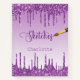 Arrière - plan à dégradé violet. Décoré avec des gouttes de parties scintillant, la peinture goutte à goutte. Personnalisez et ajoutez un nom, The title : sketchbook écrit avec un script de style à la main moderne girly avec des swashes et une brosse. Lettres violettes. Un carnet pour les dessins, esquisses, notes et devoirs scolaires.