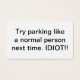 Fatigué des gens qui se garent comme des idiots ? Laisser ceci sur la voiture de la personne suivante qui prend deux places de parking, des parcs trop près de vous ou des parcs dans une zone sans parking.
