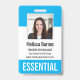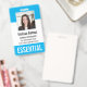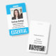 Identify essential personnel, employees, and workers with these custom photo template badges. Personalize these vertical badges with an employee photo and name, along with multiple custom text fields for title or role, company name, employee ID number, or valid through date. "ESSENTIAL" or your desired text appears along the bottom in bold white lettering for easy identification. Customize with a barcode on the back if needed, along with return information or other details.