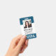 Identify essential personnel, employees, and workers with these custom photo template badges. Personalize these vertical badges with an employee photo and name, along with multiple custom text fields for title or role, company name, employee ID number, or valid through date. "ESSENTIAL" or your desired text appears along the bottom in bold white lettering for easy identification. Customize with a barcode on the back if needed, along with return information or other details.