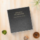Estate Planning Portfolio Binder with Custom Company Name and Contact Info, as well as Client Name, in a black embossed leather-look design. This binder is perfect for lawyers and estate planners who want to provide their clients with a high-quality, professional product for all of their estate planning, wills and trust documents. The binder can be customized with the client's name and the company name and contact info, making it a personalized and thoughtful gift.