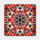 Digitally created meaningless star-shaped abstract composition of shapes and colors in an arrangement which pleased the senses of the artist.