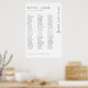 This seating chart poster features a modern minimalist design and 3 long banquet tables layout. The script text heading is an image that cannot be edited. The heading image can be resized to fit any poster size. All of the other text is fully editable. For more advanced customization of this design, simply select the "Customize It" button above.